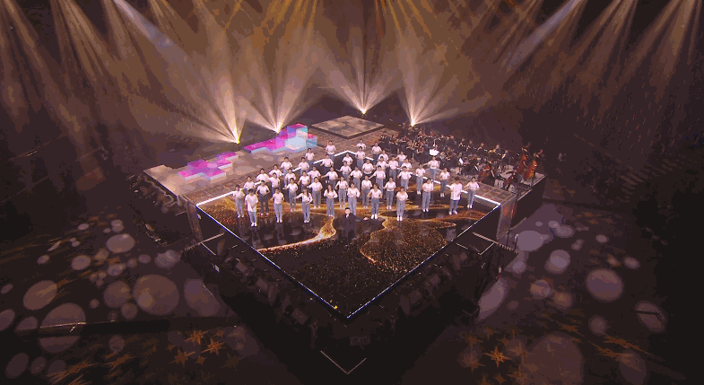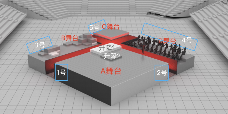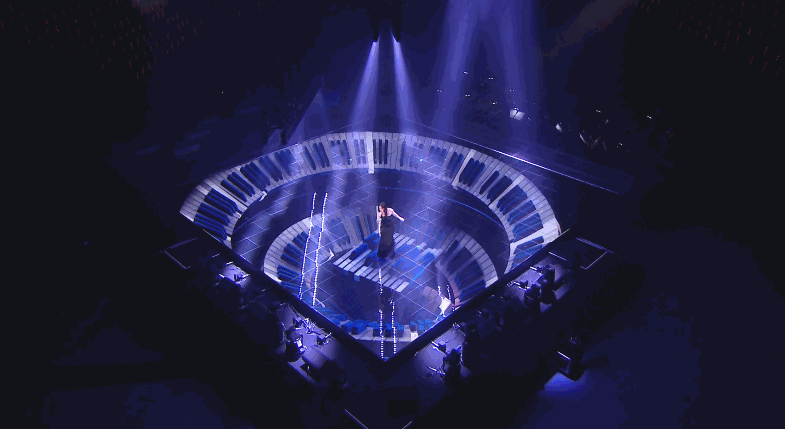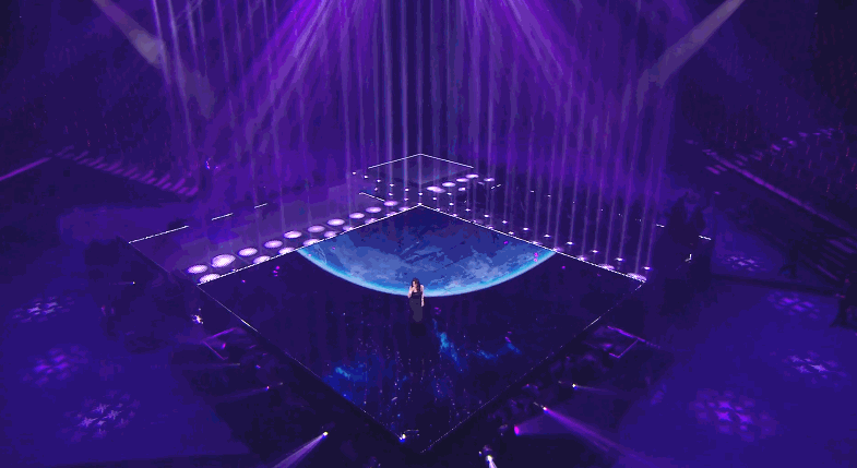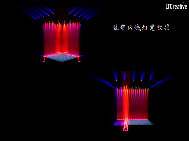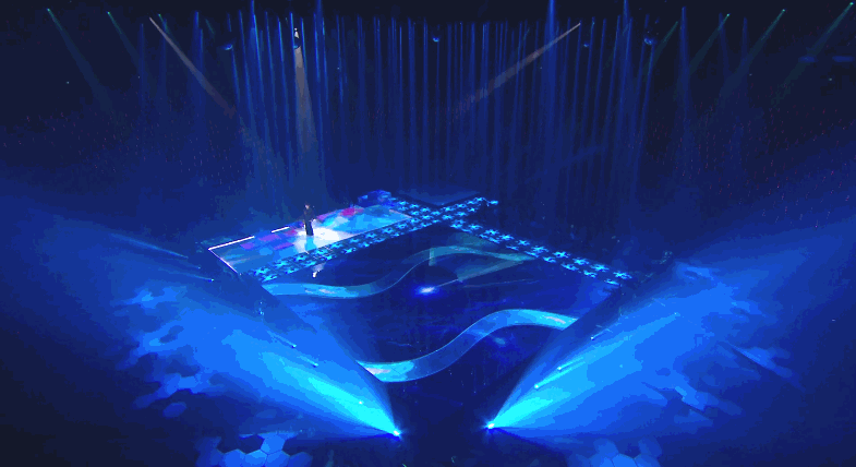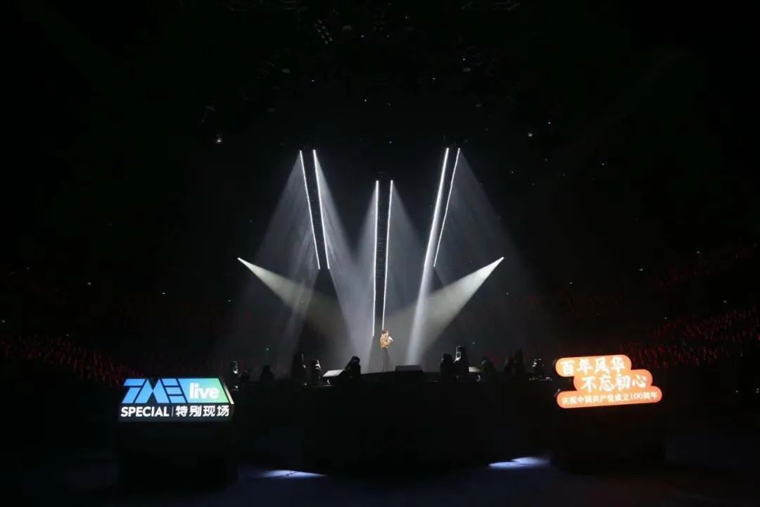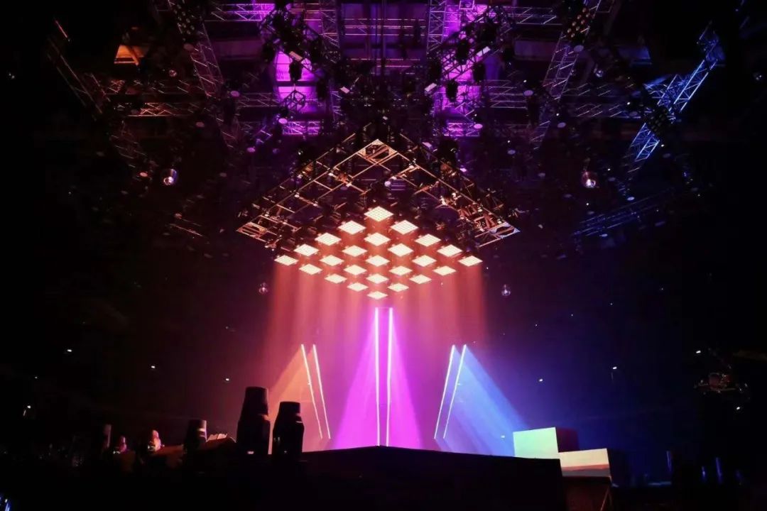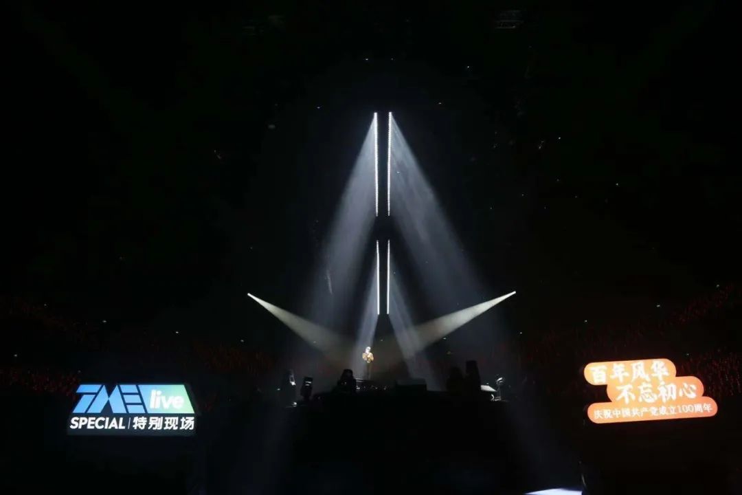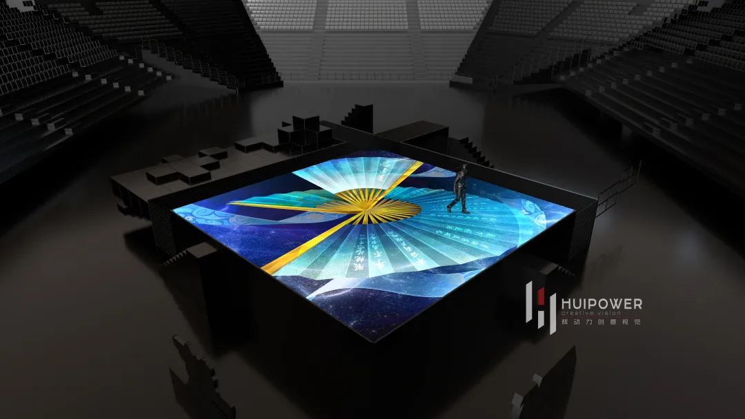 此次的主创团队来自大晶小怪导演工作室,这一次,在澳门,她们用怎样特别的方式为党100周年送上了这份守候与祝福?“既然是一场献礼,我们最初想到送给妈妈的‘礼物’(用精美的礼盒包装),如果能将这个礼物打造成一个特别的舞台(礼盒),通过不同的内容,把‘心意’‘惊喜’‘礼物’一层一层地剖开,这将会是一次很特别的制作。当我们接到青春歌会的时候,一方面时间非常有限,又因为场地设在澳门,还要涉及所有设备报关,执行压力非常大,为了能在短短一个月的时间里完成整场晚会,我们将想法与舞美、灯光、视频、音响等各个工种的团队沟通、讨论后,最终决定采用了四面台。”执行总导演吴珊表示。“四面台的设计可以提升舞台的想象空间,同时也突破了以往晚会(三面台)的常态。为了更形象地呈现礼盒的模样,我们通过礼盒红色的丝带(铁丝结构+灯光效果)将舞台划分成ABCD四个不同形态的表演区。通过运用地屏、灯阵和升降装置,为传统单一的舞台打造了多样性的表演,视觉设计上大量运用了“裸眼3D”的效果,希望能带给观众不一样的体验和记忆。”A舞台设置了3组数控升降+灯架,B舞台采用了特别的带镭射效果的盒子,为了区别其它三个舞台,C舞台是一个4x4米的方形舞台,D舞台则是交响乐团的表演区域,四个舞台根据不同的每个歌曲、故事演绎,为观众、为党献礼。“因为是建党100周年,整场晚会围绕着‘百年风华 不忘初心’的立意,为每首歌曲的诠释都做了特别的设计,还包含了国风歌曲的演绎。《莲花与彩虹的约定》将濠江中学送给习主席的画融入到视觉中。通过每一个孩子的表演来立意祖国未来的欣欣向荣:合唱队唱响祖国山河,BOY STORY唱跳彰显活力,澳门小朋友王心妤,用童声演绎对祖国美好的祝福。”北京辉动力负责了整体的视觉设计。在刘惜君《光》这首歌曲的前半段,地屏上描绘了流动的可视化光线,后半段通过裸眼3D的设计,将“光”字的笔划进行解构拆分,漂浮的笔划最终在地屏上组合形成一个完整的悬浮“光”字,视觉效果极其震撼。胡夏《悠悠岁月 》利用地屏的空间优势,用各种意象元素生动地描绘了一幅静谧的荷塘景色。许嵩《燕归巢》 用写意风格的元素解构重组在地屏上设计出山水意境的裸眼3D视觉效果。