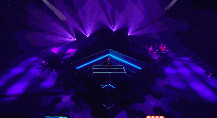 整个视觉设计最大的难点就是在没有背屏的情况下,需要精确地呈现Z屏幕视觉延伸点的定位,最后通过还原机位设计,模拟镜头的高度,给观众呈现了一场高水准的裸眼3D视觉盛宴。由于视觉做了新尝试,为了能呈现最绚丽的裸眼效果,前期也做了大量的假设,包括机位的设置,背景的考虑,摇臂摆放的位置,高机位的设置等。由于舞台高度为2米,机位台的搭建将减少灵活性,如果为了保证四面台的灵活性就会失去高度,降低画面呈现,经过导演组和摄影指导赵雷、导播王鹏的多次深夜沟通、取舍和协调,在确保舞台机械、灯光架、音响点位不受影响的情况下,最终确定了机位方案。此次的灯光设计由李杨杨负责,由于沟通和设计时间比较短,又是在疫情期间,导演组每次提出的修改需求,灯光设计都需要不断修改。由于澳门地区限制,灯具的使用也有限,除了灯阵、灯架的多变运用,现场特别设计了6颗镜球增加四面台灯光的张力。这次灯光设计的气质既是感性的也是理性的,既是静止的也是运动的。设计团队把控每首歌曲的节奏,从点到面,从数控机械灯架的运动到整个舞台的灯光布局,根据表演调度和歌曲的音乐风格,从缓慢的灯光控制到快节奏的转换,用灯光烘托出整个舞台空间。