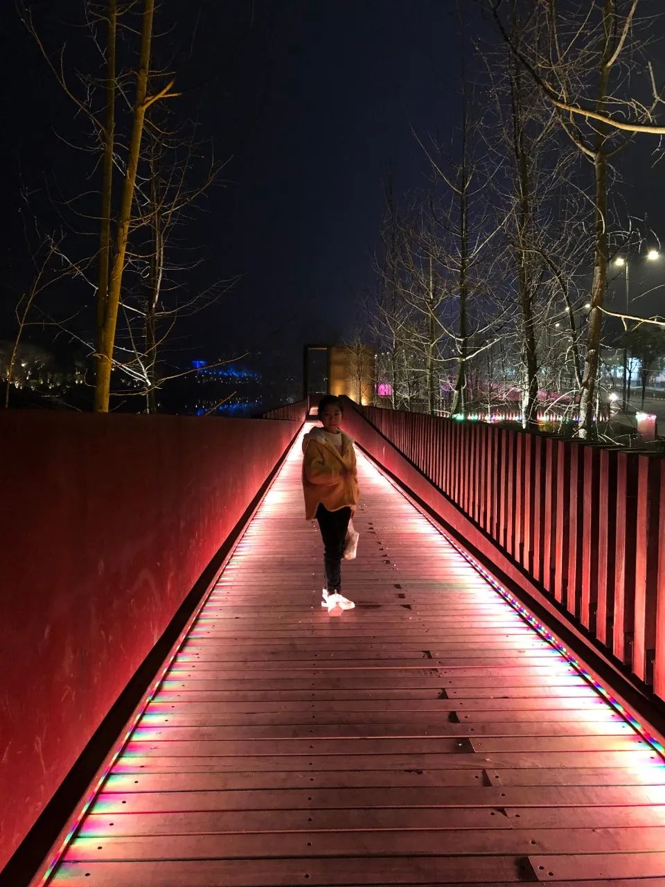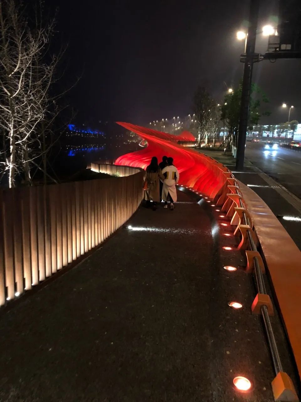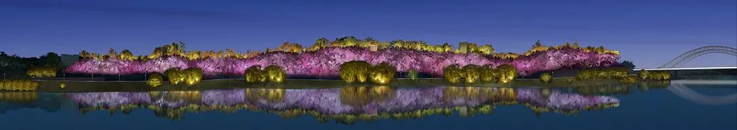 应景:动态灯光的表现形式与对岸灯光呼应。(左生态,右人文)