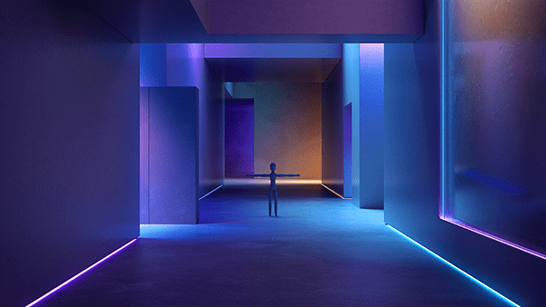 此次概念主轴注重于“科技遇见美学,我们将科技转化定义为探索的“光”,以光线为主角在空间中游走,透过光的移动与触发,带动空间开始建构、变化。不同颜色的色光则拥有情绪,为科技带来人文感受,也创造了与空间互动的更多可能性。