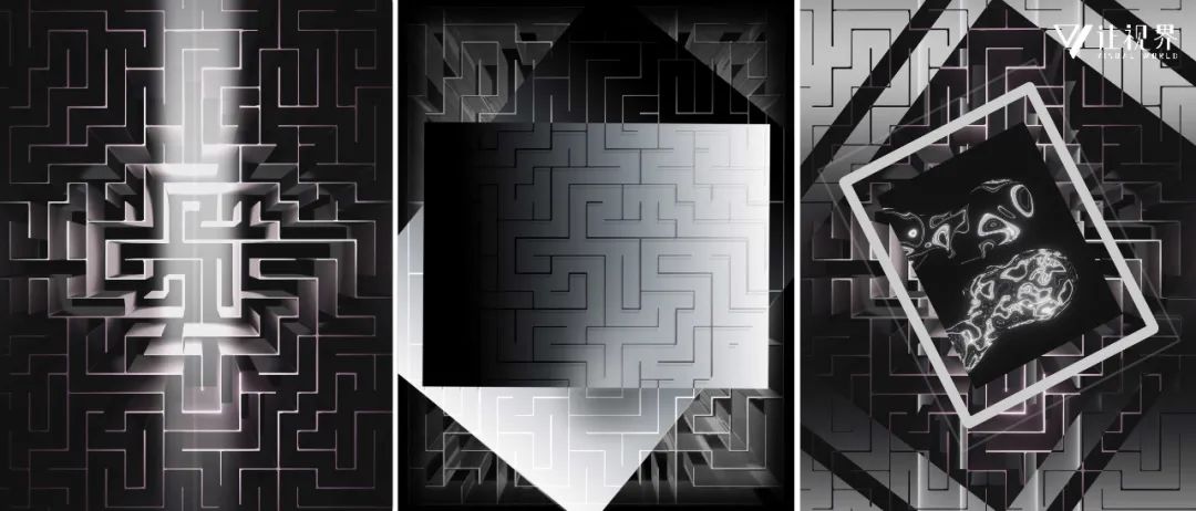设计理念:设计元素使用金属质感的迷宫,用推移的光影效果来表现空间以及结构层次,配色以低饱和度的黑白为主来表现。