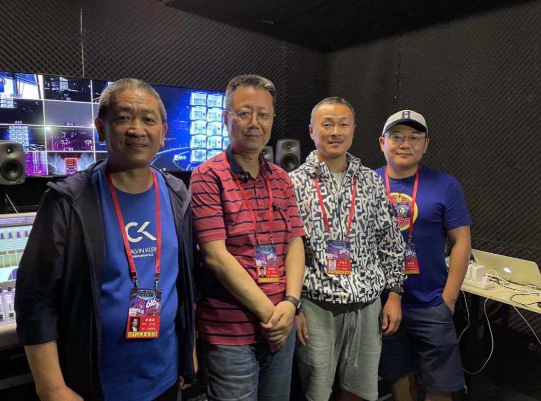 从左到右:音响总监金少刚,江苏台特聘工程师周克胜,音乐混音师李军,终混音响师侯大伟