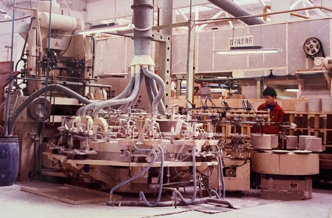 於石生说:“到了1987年上半年,机会来了。因为取消了拨款,技改资金改为贷款。那一年,国家计委轻纺出口产品有一个技改项目向全国招标。公司接到这个通知后,首先想到的就是我,问我是否有兴趣去投标,我是求之不得的事,爽快就答应下来了。我们就组织力量编制标书参与投标,结果就中标了,也就是国家计委901万贴息贷款(具体什么项目自己定),钱不够可通过其它途径融资,也就是说给你一个笼子(政策)。那时,市场经济观念大家都不是很强,有些人还不敢钻这个笼子,但我就召集人马干了起来。当时,对这个项目也有不同的声音,还有的说,老於耶,你弄了这么一个大的项目,上面可管不了呢,你吃不了兜着走。我并不怕,也不后悔。1987年就去考察,王伟科带队,还有公司的辜振启,设计院的张恒荣、翻译颜石麟,为民瓷厂的还有史振华、肖春蓉。考察的目的就是定项目,也就是决策性考察。先到德国,后到英国。在英国,他们的陶瓷协会领导接待了我们,他们说,你们景德镇是陶瓷的祖宗,我们生产陶瓷是向你们学来的,但现在我们比你们做得好。在英国开会,到底是引进英国技术还是德国技术,内部也有不同的意见,有的认为英国的技术是骨灰瓷,卖价高;而我认为引进德国技术要好,因为景德镇有史以来就是生产硬质瓷。再说德国的等静压成型生产线是当时世界新技术,他们自己也是80年代初开始使用。王市长开明,他说你是厂长,是法人代表,我虽然是领导,但这件事还是你说了算。回来后就做可行性研究报告,通过测算项目总资金需要约4369万元,其中外汇约700万美元。资金来说,国家计委轻纺出口产品基建项目办公室提供拨改贷资金900万元,自筹资金900万元,日本海外经济协力基金贷款465万美元,康富国际租赁公司250万美元。从德国两家公司,即瑞奇公司成型生产线和雷德哈姆公司的煤气隧道窑,项目由瑞奇公司总承包。工艺上有根本性改变:原料方面,所有盘类产品采用特别的颗粒粉料干压成型,颗粒粉料采用喷雾干燥设备;凹型和空心产品仍采用可塑泥料和注浆泥料,但为了提高坯料成型性能和原料颗粒度,采用单一原料化浆,部分原料球磨的工艺方法,以适应引进的杯子生产线,空心注浆生产线,万能滚压成型机。成型方面,碗盘类利用等静压成型全套设备(包括模具);碗类凹型产品引进万能滚压成型机,杯类产品的成型,干燥引进联动生产线,空心产品成型引进注浆生产线。素烧后的坯体施釉方法与景德镇传统方法不同,盘类产品引进施釉生产线,一次性完成;凹型和空心制品利用手工浸釉。烧成方面,引进素烧和釉烧两条焦化煤气窑,两次烧成(景德镇烧成史上第一次)采用全套电子控制设备。”