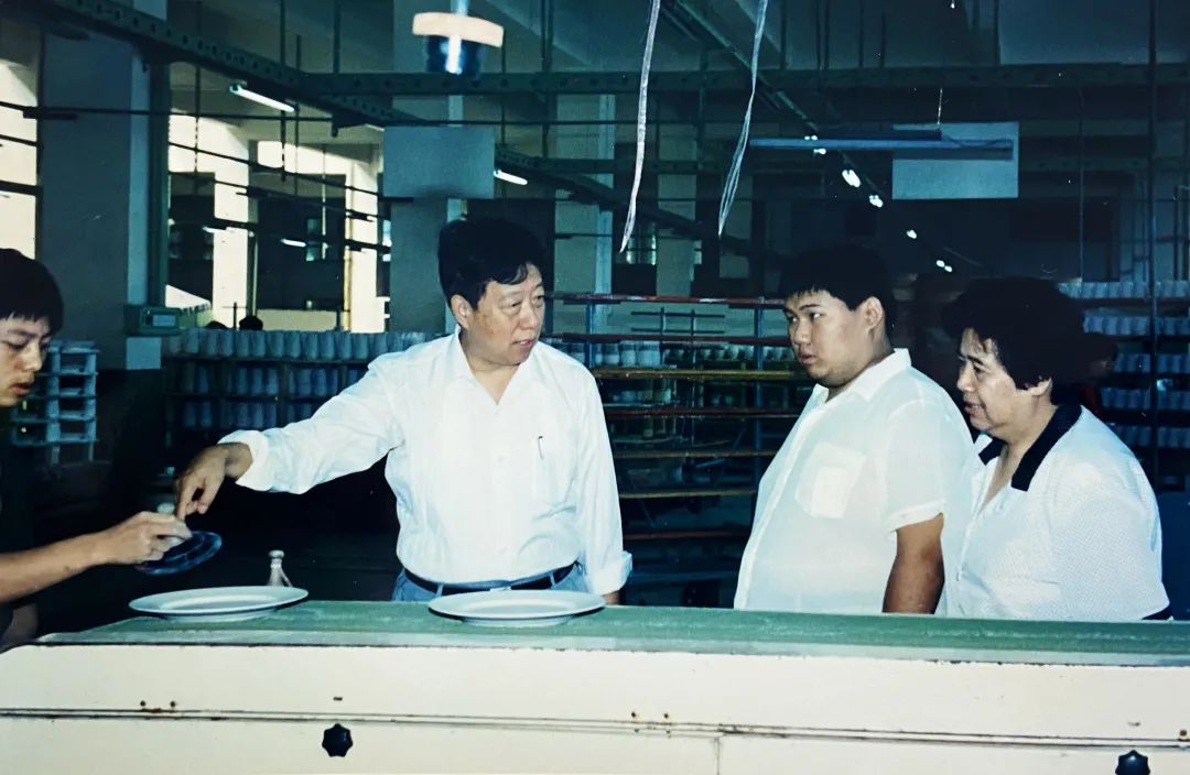 当时的省领导参观生产线(陈小春摄)