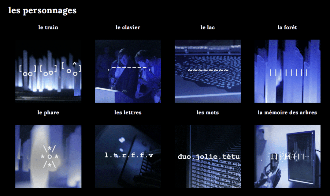 海酷斯的旅程(The Haïkus' Journe)是对观众的公开邀请,自发的思想和贡献融合在火车通行不断搅动的字母池塘中。用指尖在键盘上键入想法种子。字母像分子一样出现,形成单词的各种风味,诗意的交响乐在湖上共鸣。