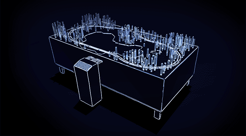 法国声音设计师Jérômeechenoz创造的伴奏也提高了作品的空灵,该音轨从四个不同方向广播,并以两个光晕的相同速度移动。