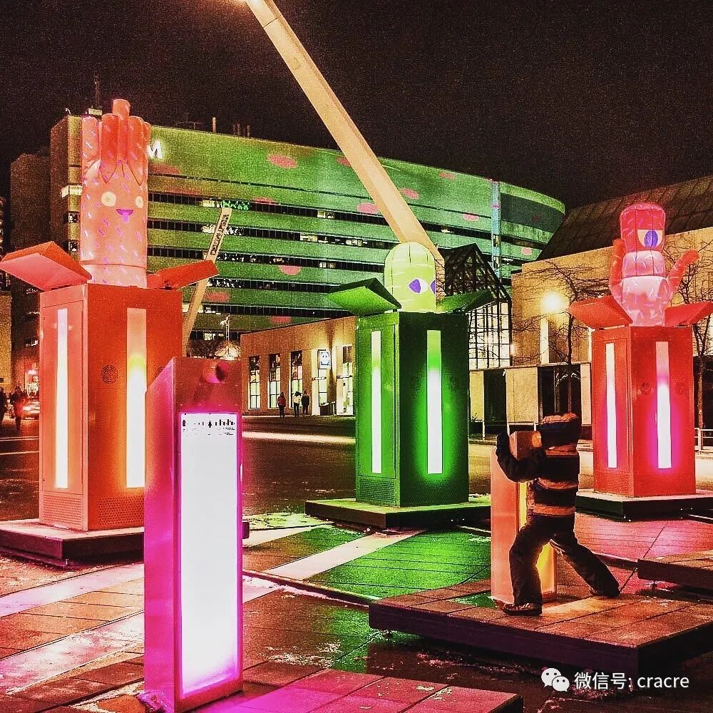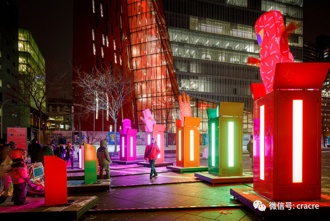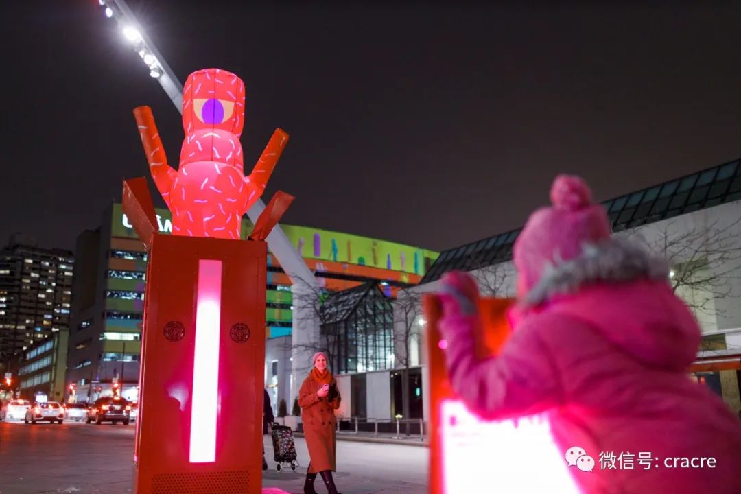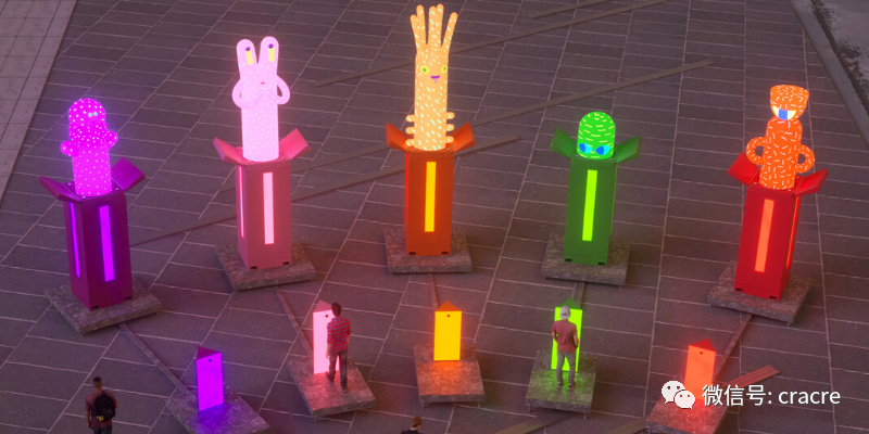 该装置虽然结构简单,但是鲜艳的色彩和俏皮的方法让其更具有微妙的深度,对流行文化和当地民俗进行了一些升华处理。