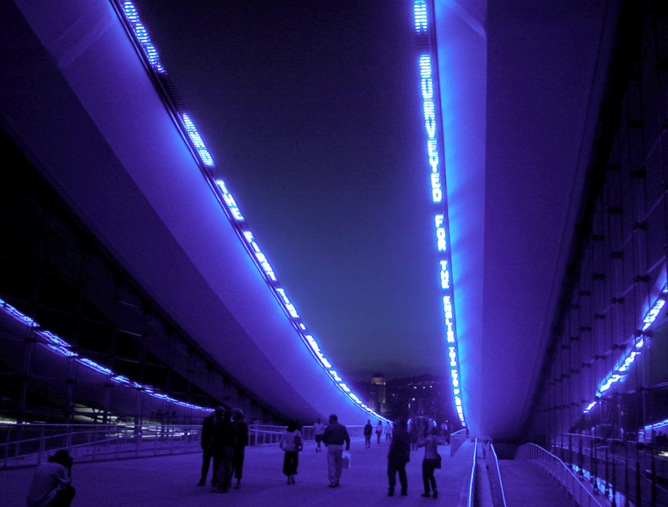 从很早开始,Jenny Holzer就将文字与灯光结合而起来,做成了一系列的投影作品。