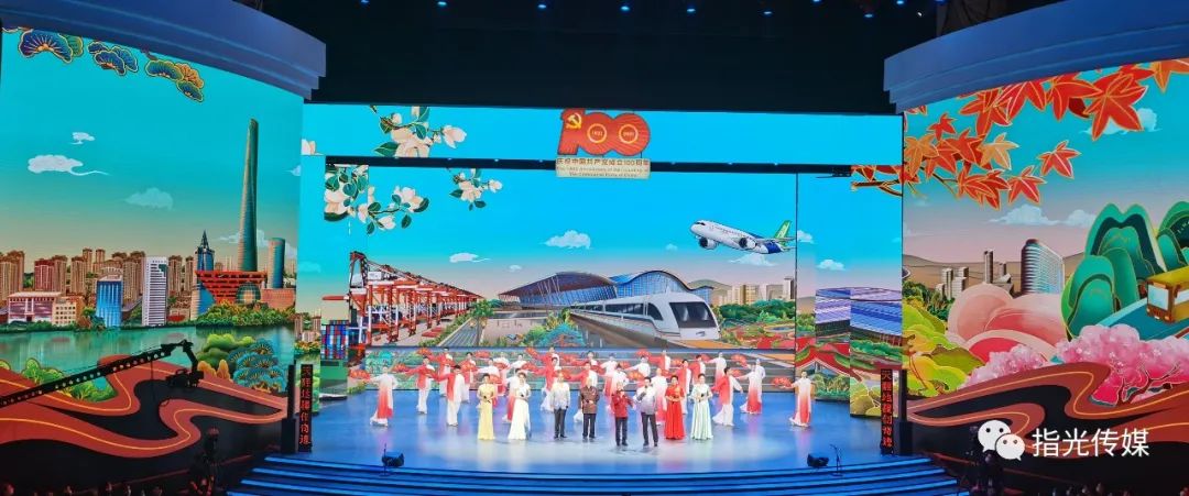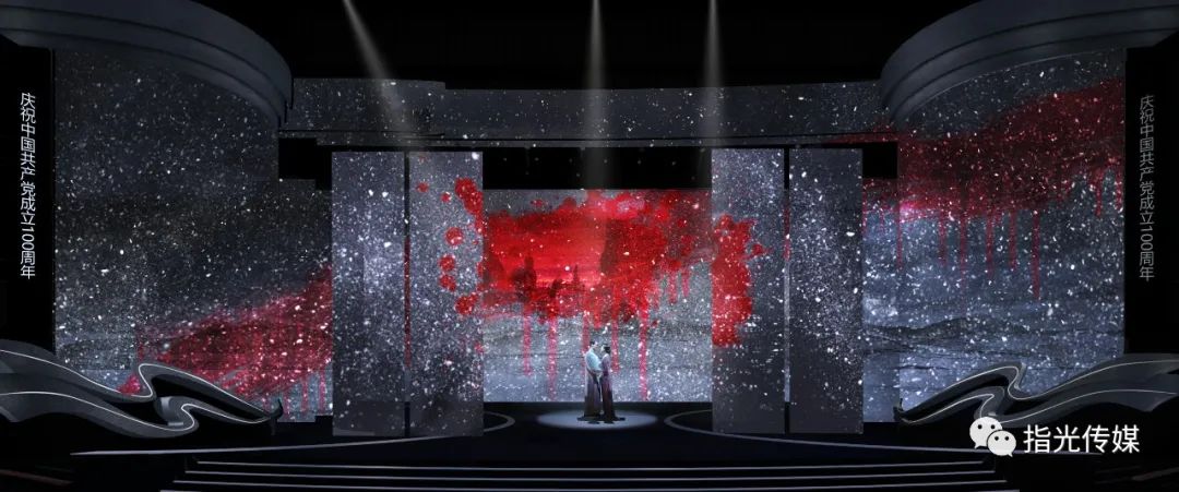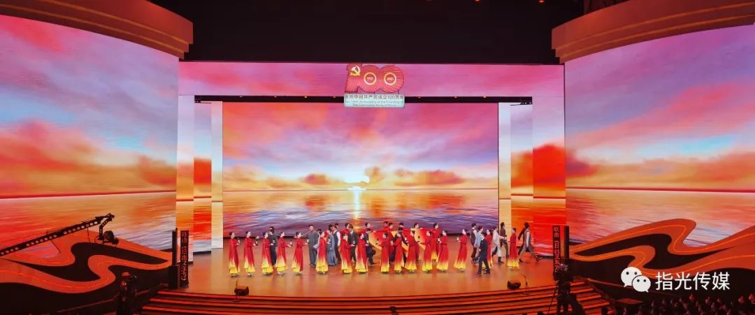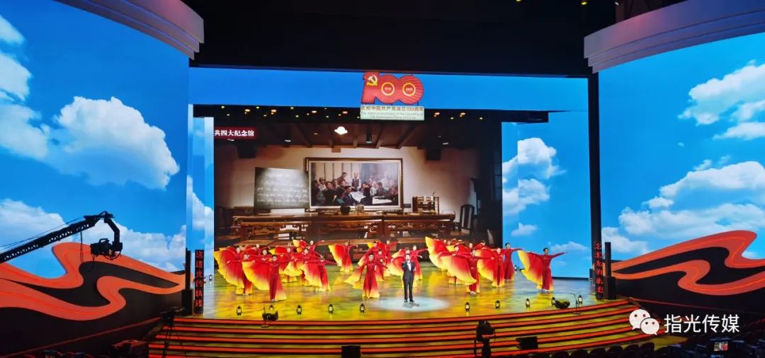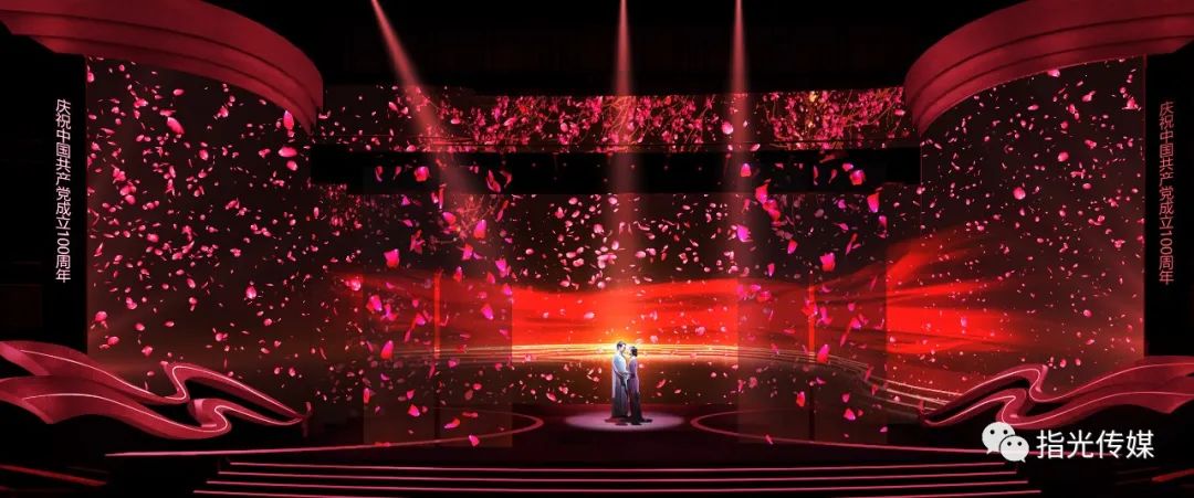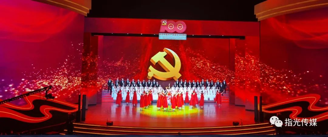 指光文化受东方卫视邀请,参与设计制作灯光、视频工程。在刘文国及赵蕾总导演的指导下完成,历经半年的时间,从收集材料,把握方向,舞台创意,呈现方式,指光以专业的态度辅助导演,与每个节目的编导共同创作,不断打磨,以历史背景为题材,通过情景表演,舞蹈 歌曲的形式利用舞台的变化形成不同的视觉效果。指光文化通过艺术灯光及视频生动再现了中国共产党100年的光辉历程。