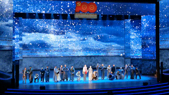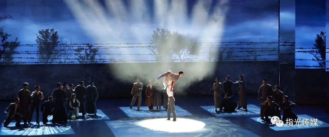 催泪再现了一段发生在1931年的血色往事,慷慨「赴死」的一对「恋人」,戴着镣铐起舞的22位青年,用凄丽的舞蹈向龙华24烈士献上无限的缅怀与敬意……舞台映照着一代代中国人的青春如火、初心如磬,在百年岁月里持续绽放鲜亮而纯粹的光芒。