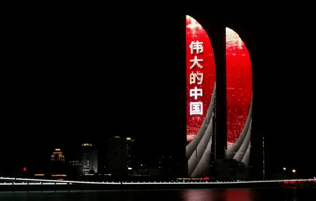 热烈庆祝中国共产党成立100周年!在中国共产党建党百年之际,我们共同祝福祖国,祝福我们伟大的中国共产党万岁!整个灯光秀之中,既有鹭江道十四屏联动呈现出党旗飘扬,也有建筑侧墙那一抹抹的红色光芒,海岸光线穿梭,海面光影流动,光束摇曳中一曲《走向复兴》将全市人民的情绪推向高潮。
