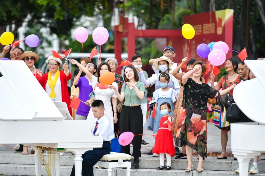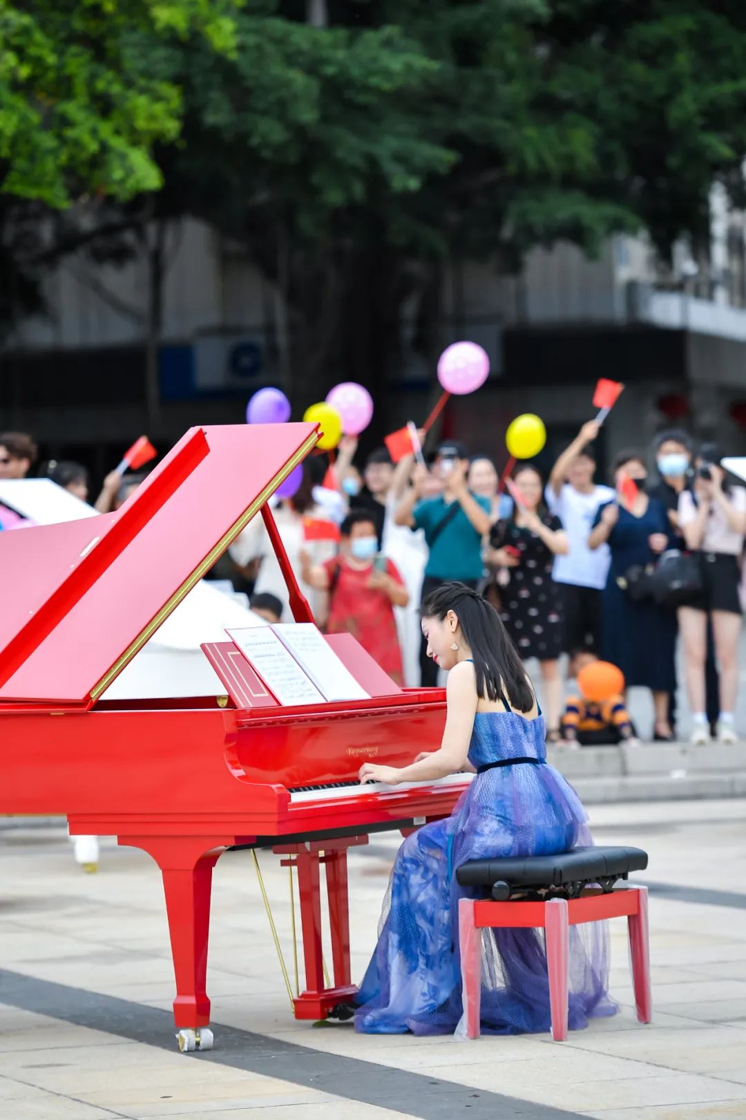 庆祝建党100周年,福建革命事业的策源地——鼓浪屿,凤凰花正热烈盛放,当地百姓发起了一场“鹭起音乐快闪 岛庆建党百年”共享钢琴演奏音乐会,以优美动听的琴声、最美的笑脸与祝福,献给建党百年华诞。