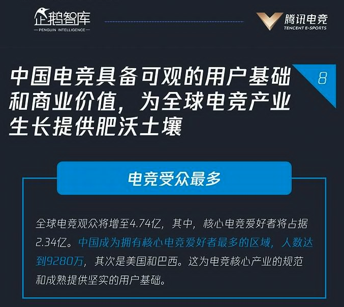 在宏观层面,中国已经成为全球第一大电竞市场。根据艾瑞咨询发布的《2021年中国电竞行业研究报告》显示,2020年电竞整体市场规模超过1450亿元,预计2021年将突破1800亿元。不久前腾讯电竞联合企鹅智库发布《2021年中国电竞运动行业发展报告》也指出,在全球2.34亿核心电竞爱好者中,中国区域拥有9280万核心电竞爱好者,并创造3.6亿美元的全球赛事营收规模,占到了全球10.84亿美元规模的三分之一。