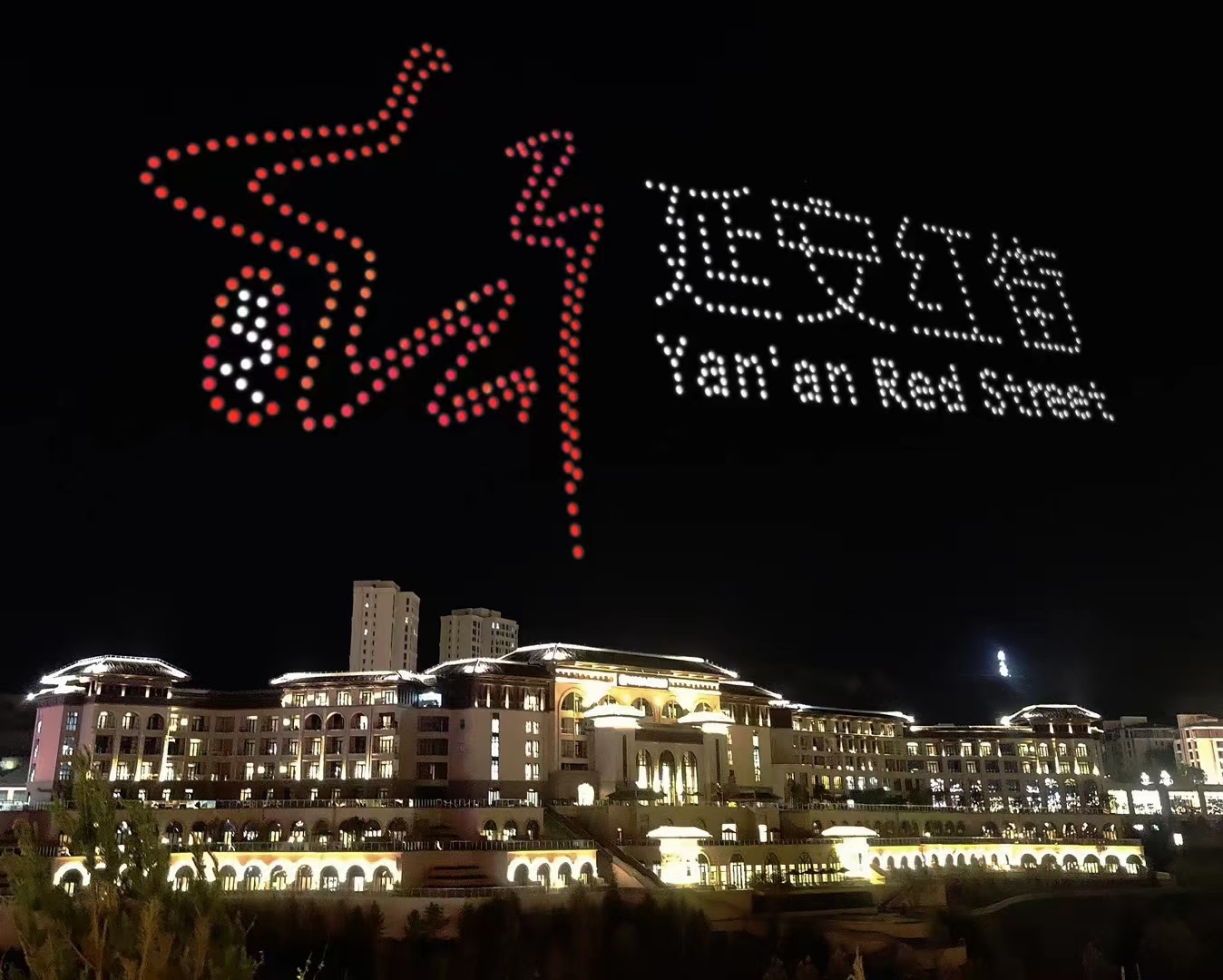 6.12,延安,红色旅游,延安红街,定制无人机表演,编队灯光秀,表演顺利结束!