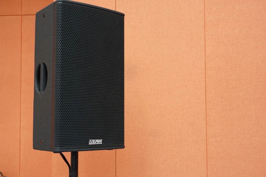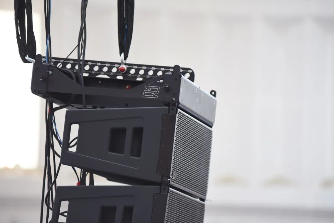 对于少部分覆盖不理想的观众区域,我们决定使用延时补声音箱。因此在舞台的前沿两侧位置,以及观众席中区两侧处,我们各放置有一只RS121有源点声源扬声器,作为补声音箱。