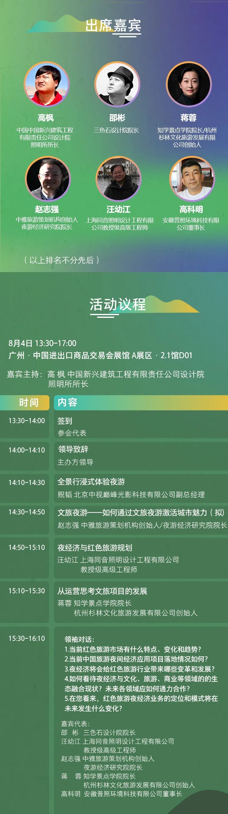 那么重新回归而来的2021 文旅夜游生态发展论坛有哪些亮点呢?届时我们将强强联合业主、投资方、内容策划、方案设计、创新产品、工程施工、项目运营等 7 大领域,以现场展示、灯光表演融合高端论坛,聚焦文旅融合发展新业态,从全产业链布局视角,多角度探讨文旅发展大势!