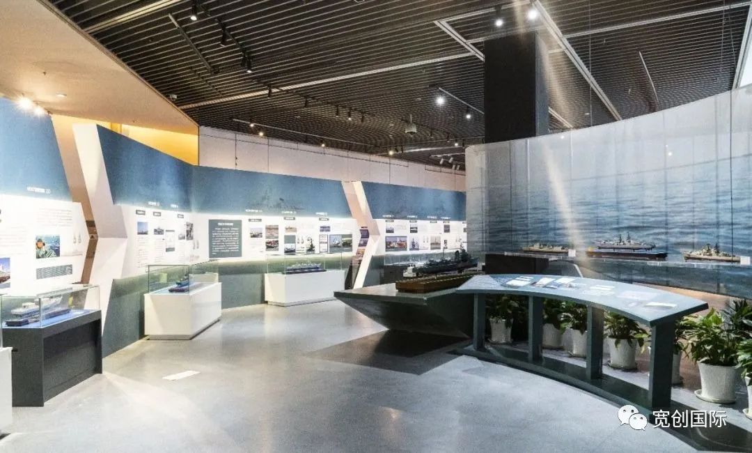 “舰证强军·中国百年名舰展”以甲午战争以来中国海军百年发展历程为主线,采取舰体厅与临展厅联动展示的方法,使用图片、文字、文物、舰模、造景、多媒体等形式,通过 “旧中国的海权悲歌”“人民海军发展壮大”“新世纪走向深蓝”三个篇章,展出实物110件(套),讲述了甲午战争以来各个历史时期具有代表性的战舰故事,以“舰”证史,以“舰”说史。