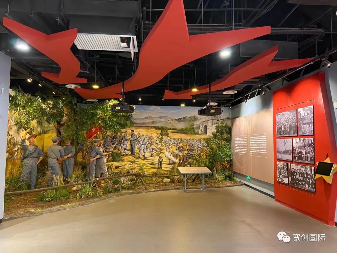 宽创国际,通过多元创意画+高科技剧场效果营造,多视角呈现文物故事,打造集教育、宣传、互动、传播于一体的新时代红色展馆!