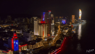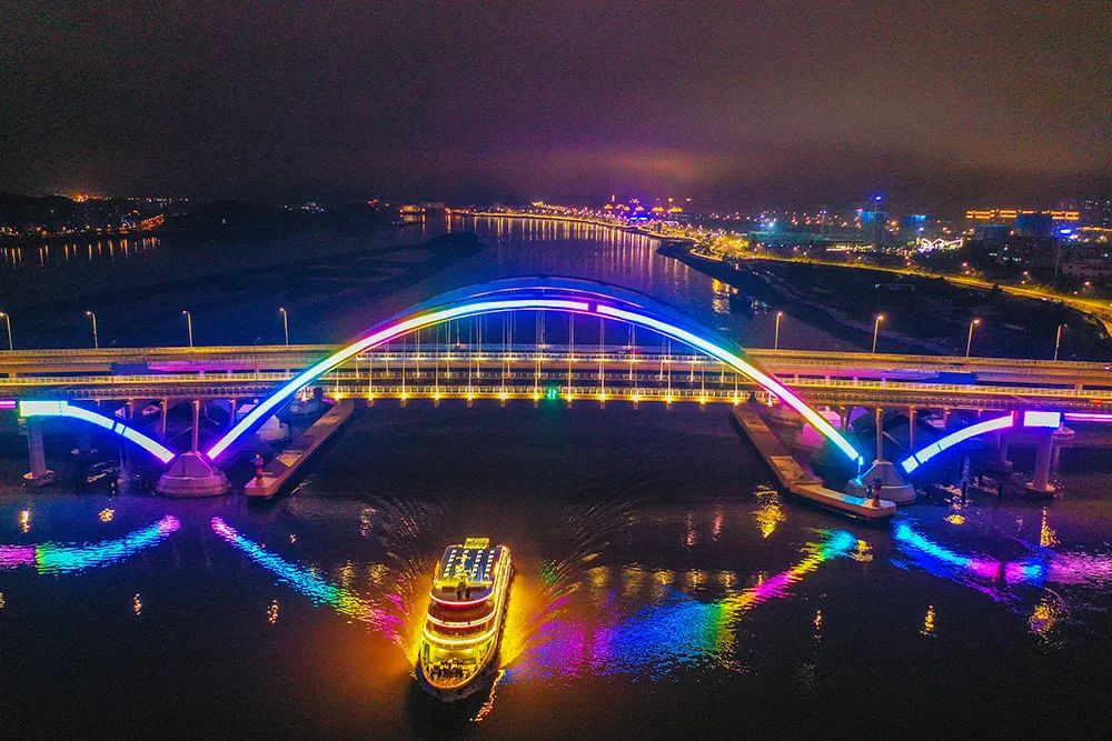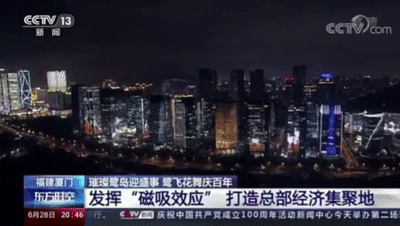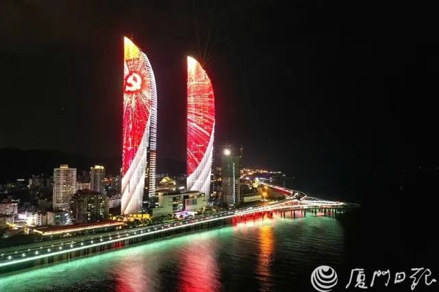 为庆祝中国共产党成立100周年厦门鹭江道和海沧湾沿线建筑立面、桥梁等都换上了“新装”,以灯光秀的形式展示鹭岛风情