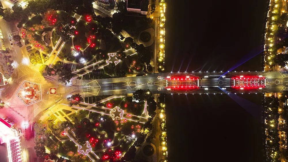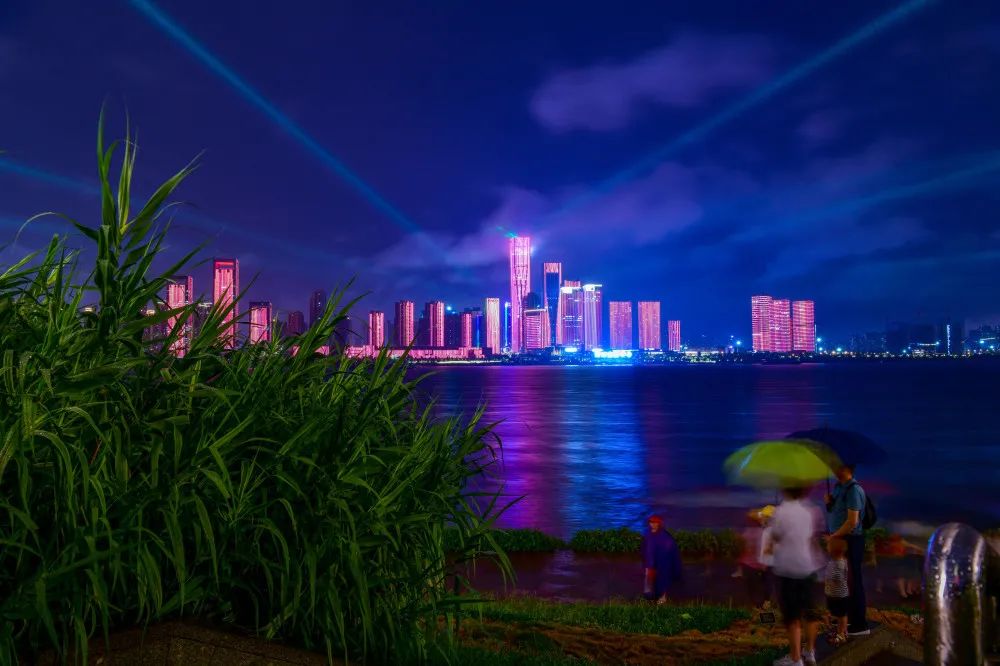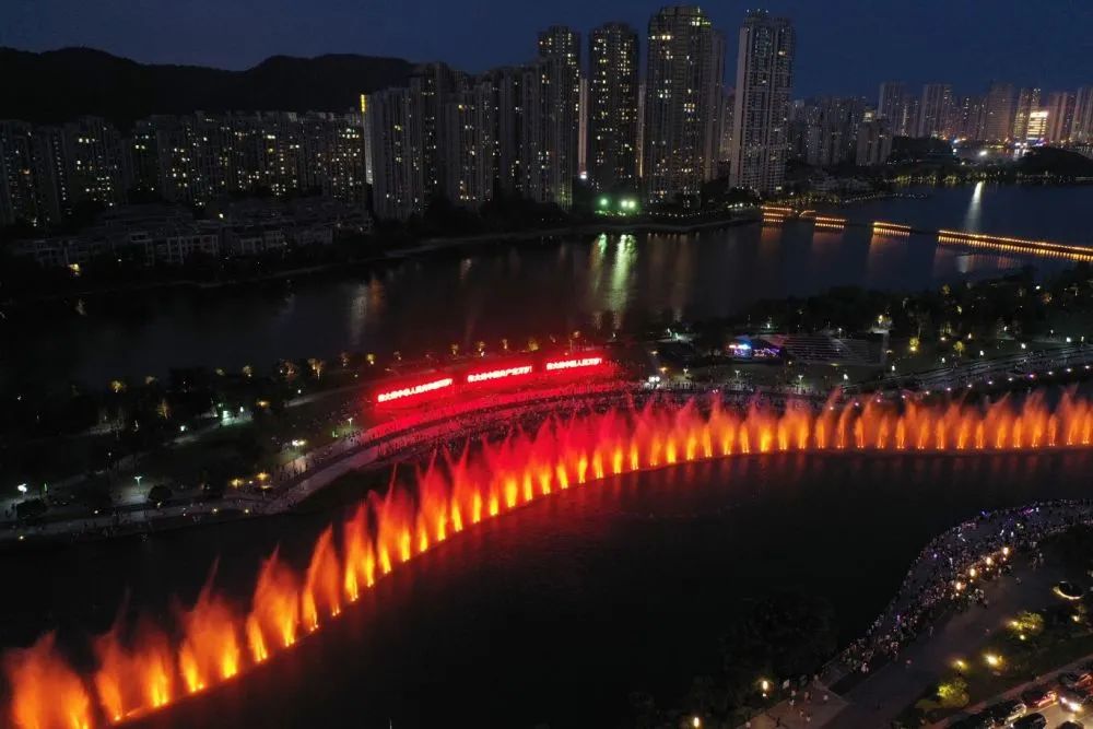 “璀璨鹭岛迎盛事 鹭飞花舞庆百年”,主题灯光秀惊艳亮相,这场灯光秀的主色调是代表着忠诚、勇敢和兴盛的“中国红”。