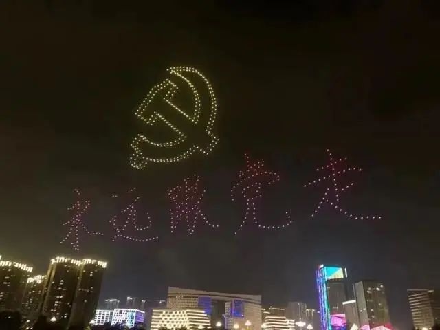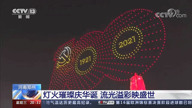 不仅如此,郑州广播电视台还协助央视组织大型无人机表演,上千架无人机扮靓城市夜空,共贺党的百年华诞!