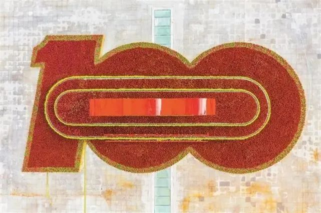 市民中心国旗广场前庆祝中国共产党成立100周年主题花雕。