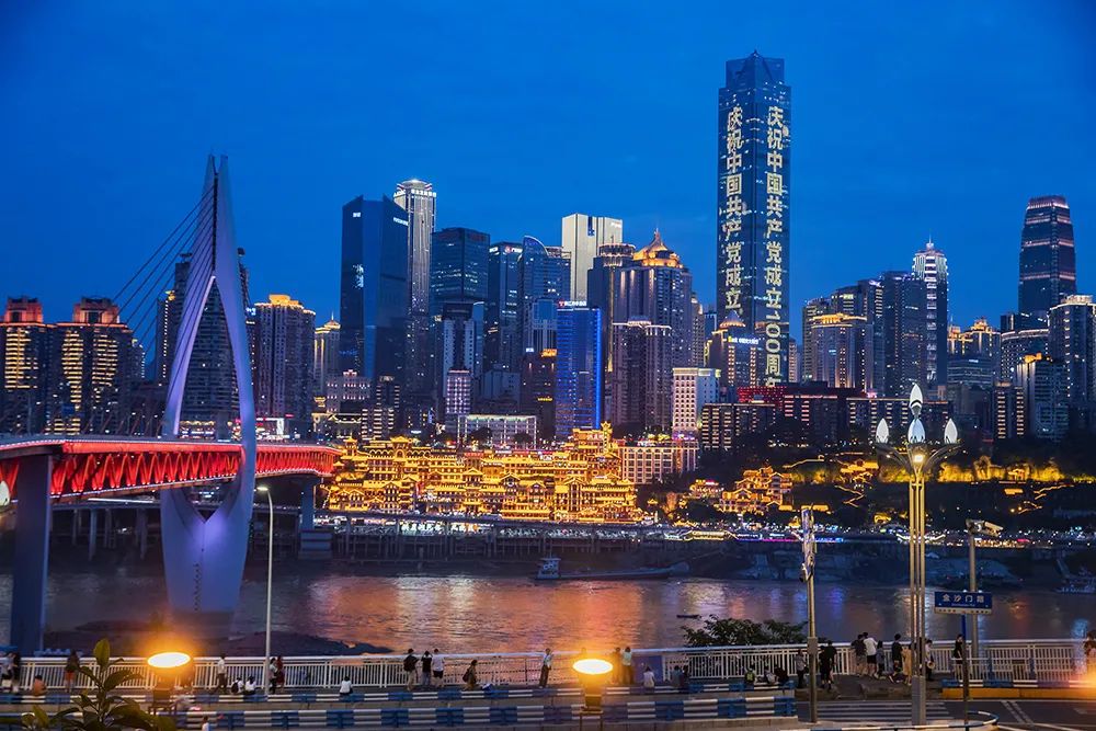 6月22日晚,重庆庆祝建党100周年灯光秀精彩上演。古巴渝、老山城、新重庆的集中展示地。