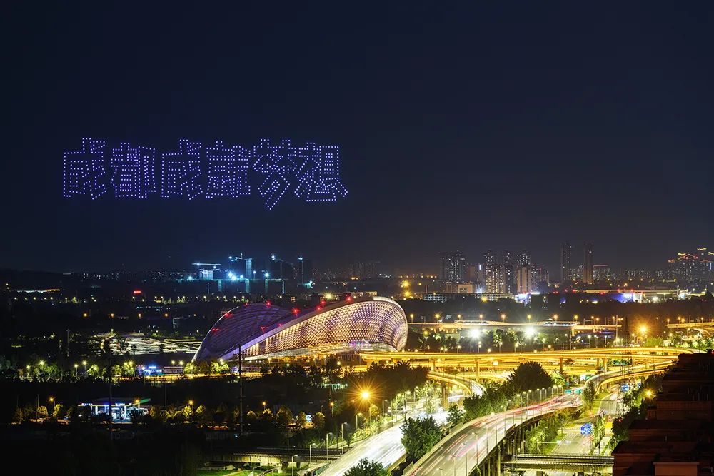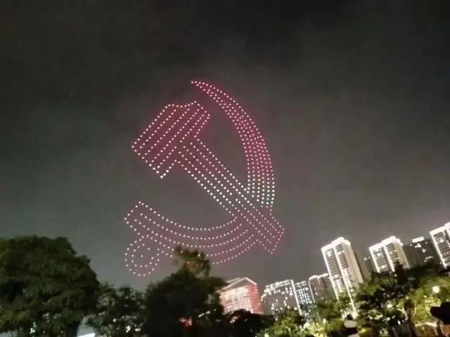 6月29日,成都露天音乐公园举办建党100周年无人机灯光秀。