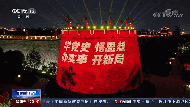 为热烈庆祝中国共产党成立 100 周年,近日,西安全城多个地标开启盛大的灯光秀。