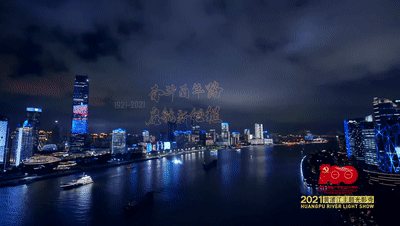当晚7 点半起,“永远跟党走” 黄浦江主题光影秀正式在黄浦江两岸演绎,光影秀以黄浦江江面、两岸 300 多座建筑楼宇、夜空等为画卷,以流光溢彩的景观灯光等为画笔,生动展现了中国共产党带领人民不忘初心、牢记使命、艰苦奋斗的百年光辉历程,令浦江两岸的市民游客惊喜、赞叹,纷纷观赏拍照。