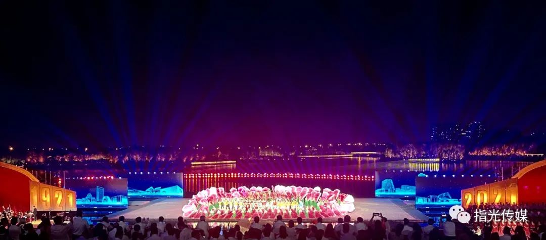指光文化作为晚会的总制作方,负责晚会的整体效果,对灯光、舞美、视频、音响、投影进行设计制作及演出的操控。对整个工程的视觉呈现,指光文化以专业的态度集合多方设计师,统筹各环节工作,为嘉定庆祝中国共产党成立100周年呈现出一场自然与艺术相契合的情景文艺汇演,美丽的远香湖畔亮起了绚丽夺目的灯光,形式多样的精彩节目逐一上演。