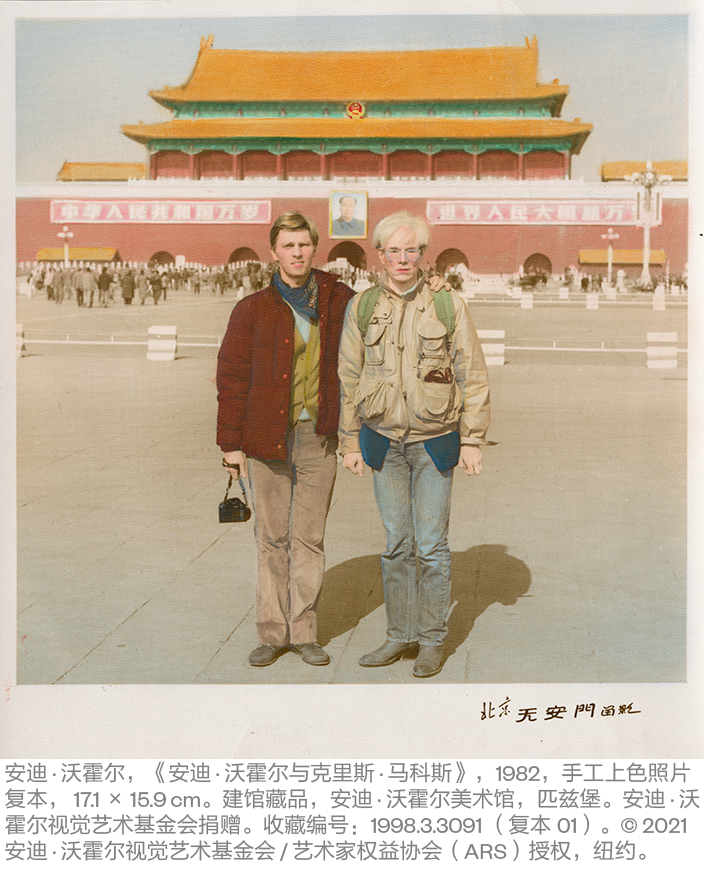 美国总统尼克松1969年上台后,与中国试探性接触,7月解除了部分对华贸易的限制,对政治敏感的安迪·沃霍尔在1970年开始以红宝书中的毛泽东头像创作作品。1982年,沃霍尔曾来过一趟中国,并在天安门前合影,艺术家后来拼接重复图像的灵感被一些人认为可能源自这一年的中国旅行经历。这也是他仅有的一次中国行,五年后他因心脏病突发死于纽约家中。