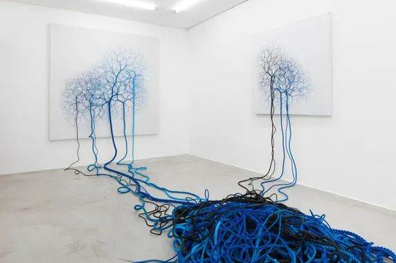 巴西艺术家Janaina MelloLandini利用绳索制成了许多复杂艺术品,突破画布边缘,从地板爬到天花板;像动脉,蜘蛛网或树根一样分支。艺术家的作品很广泛的,所有的作品都在探索空间的张力,强调个人在社会乃至整个世界网络中的无限关联性。