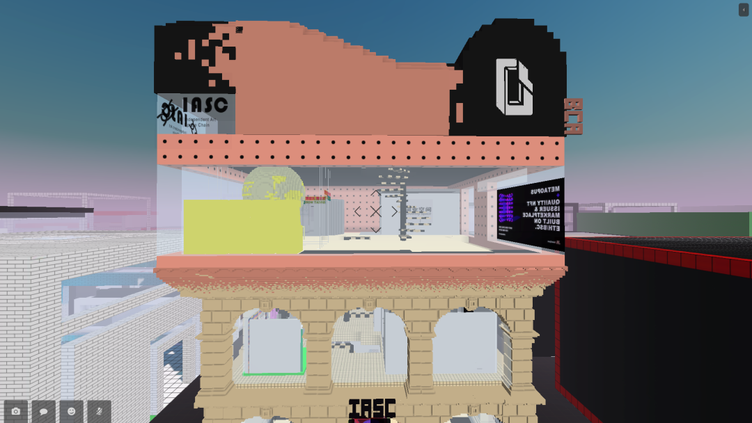 刘博和方贤晨是IASC(Independent Art Space of Chain,独立空间链)的两位创始人,作为IASC的首个空间项目,原本计划在实体空间的展览恰巧赶在这一波Metaverse的热潮中实现,在加密艺术平台BCA提供的虚拟地块支持下,9个艺术项目分别在CryptoVoxels进行了独立的搭建。