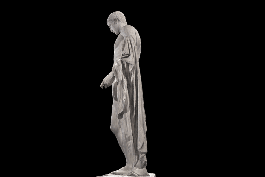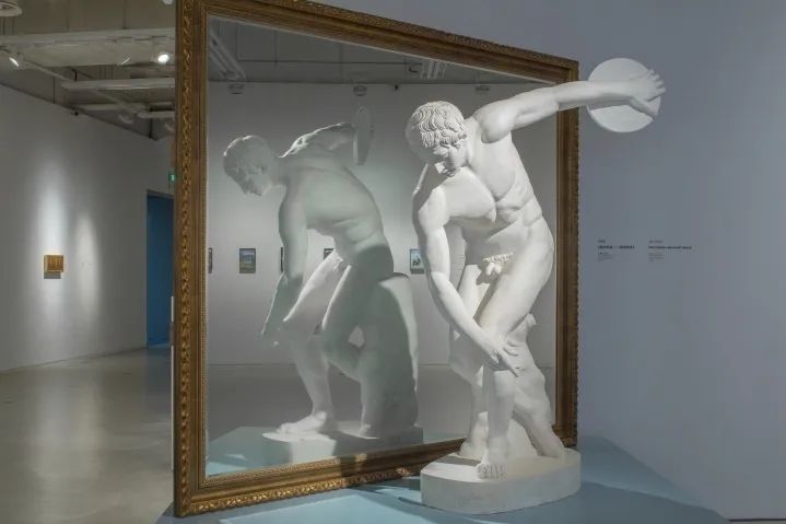 隋建国则重构了西方雕塑作品《掷铁饼者》,作者挪用了《掷铁饼者》的镜像造型,并用镜子进行了还原,使人能够看到雕塑的全貌。