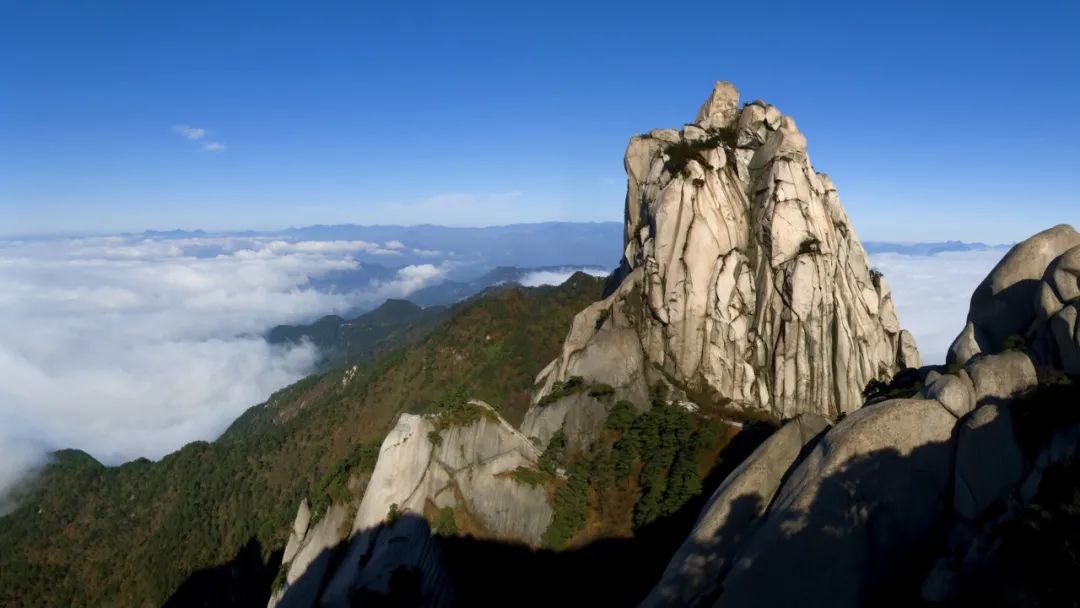 九华山世界地质公园位于安徽省南部池州市,属于花岗岩山岳地貌。壮观的大型花岗岩断块地貌是区域地理单元的杰出范例,拔地而起的山峰与丘陵、盆地地貌结构创造了形态各异的花岗岩石峰、丰富多样的生物与水资源,是九华山文明的源泉与载体。