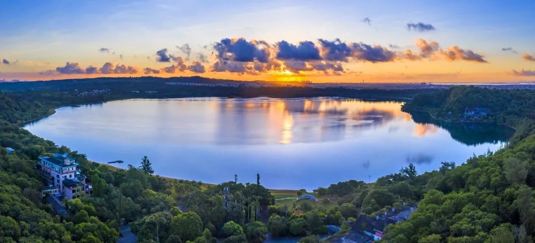 公园以海口马鞍岭等为代表的第四纪火山带闻名于世,更为独特的是公园分布着多处由炙热岩浆与水相互作用形成的特殊火山地貌——玛珥火山,其中一些积水成湖,最具代表性的是湖光岩玛珥湖,因其具有重要的科研价值,成为了研究全球古气候、古环境变化的绝佳地点。