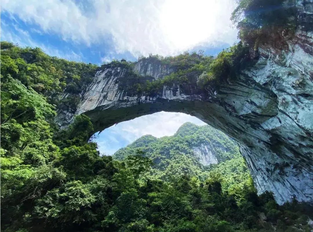 公园内的典型块状岩溶区,发育有两大地下河系统,形成了成熟的高峰丛地貌,拥有全球最大的乐业大石围天坑群、最集中分布的凤山洞穴大厅、天窗群、最大跨度的天生桥及典型洞穴沉积物、最完整的早期大熊猫小种的头骨化石等。