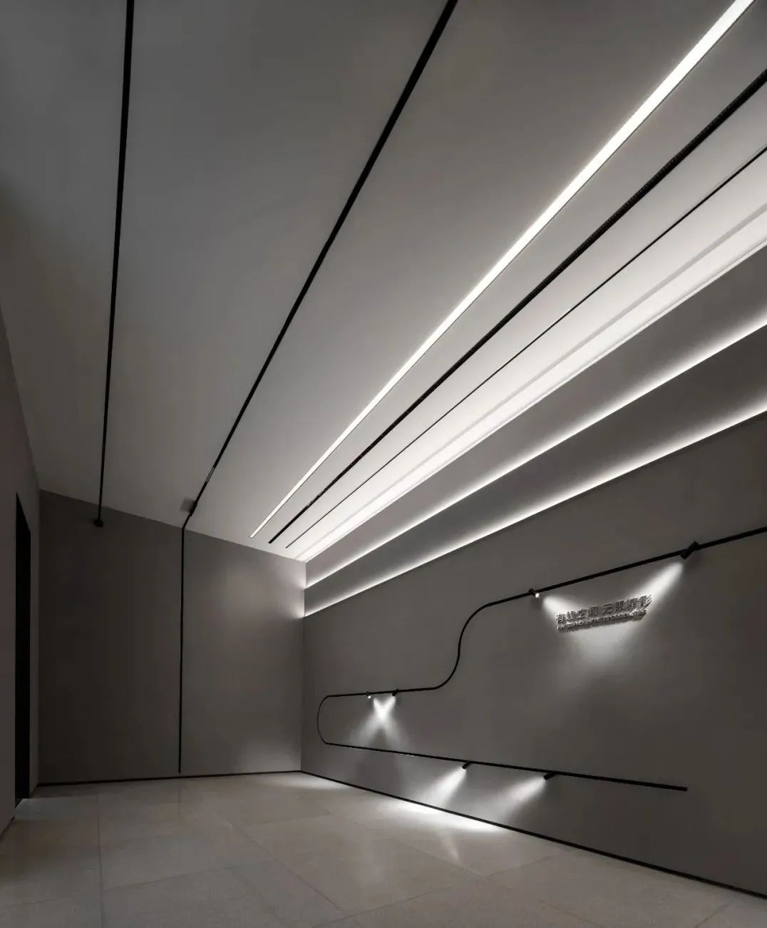 通过灯具外形对光影构造释放出的形态关系中,设计师认为灯光投射,最终形成的“状态”是理性思维制造出的一种感性艺术,也是品牌传达的状态。力求把灯光产品与空间相融合,以光源作为中心点,以线条做空间延展,让光影在空间中带有韵律感的舞动,让每一位走进的客人随着空间的变换感受不同场景下的光影之美。