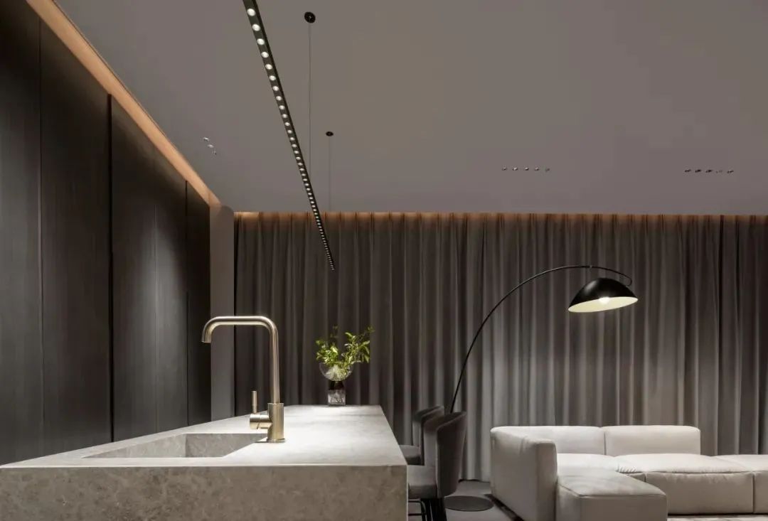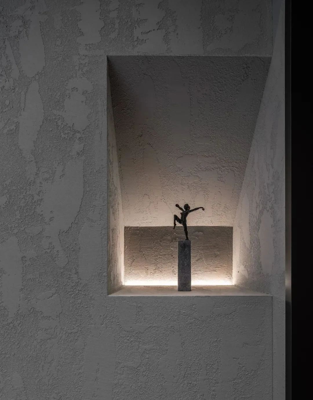 同时,WED中熙设计热衷于探索不同材料在室内空间中的表现,在这里,灯光是主角,金属、大理石材、混凝土这些常见的不同质感材料的衔接、使得空间具有一种简洁而富于美感的视觉体验,感性与理性的融合就如冰与火的碰撞。不同材质中被释放的光和影,让空间的冲突感与层次感极为丰富,带来不一样的视觉体验感。