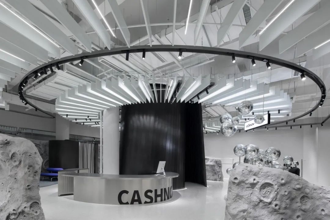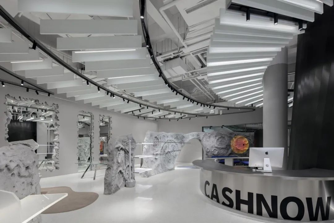 LOOKNOW是一个星际能量场,设计师团队用了抽象物化的方式,用四组装置串联起来,让人无限想象。