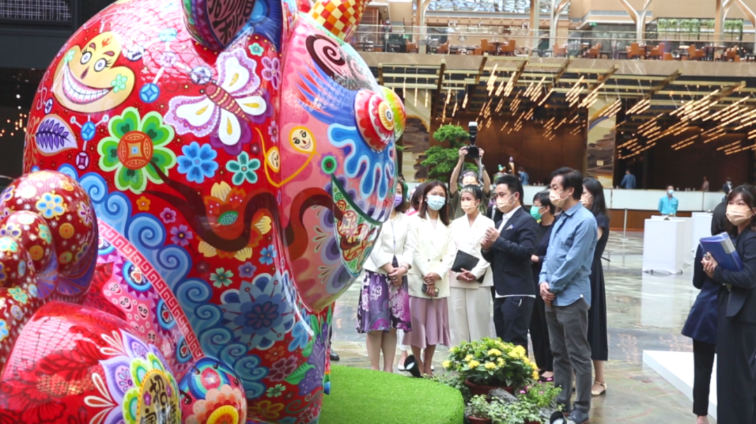 在此之外,整个美狮美高梅的商场与大堂空间都成为了展览的场地。在其中布满了著名雕塑家洪易呈现创作生涯中首个“美狮”家庭系列的雕塑作品,藉此传达中国文化中的家与孝慈的观念;并于获得健力士世界纪录荣誉的美狮美高梅视博广场打造一个“美狮家族开派对”动物雕塑公共艺术项目。