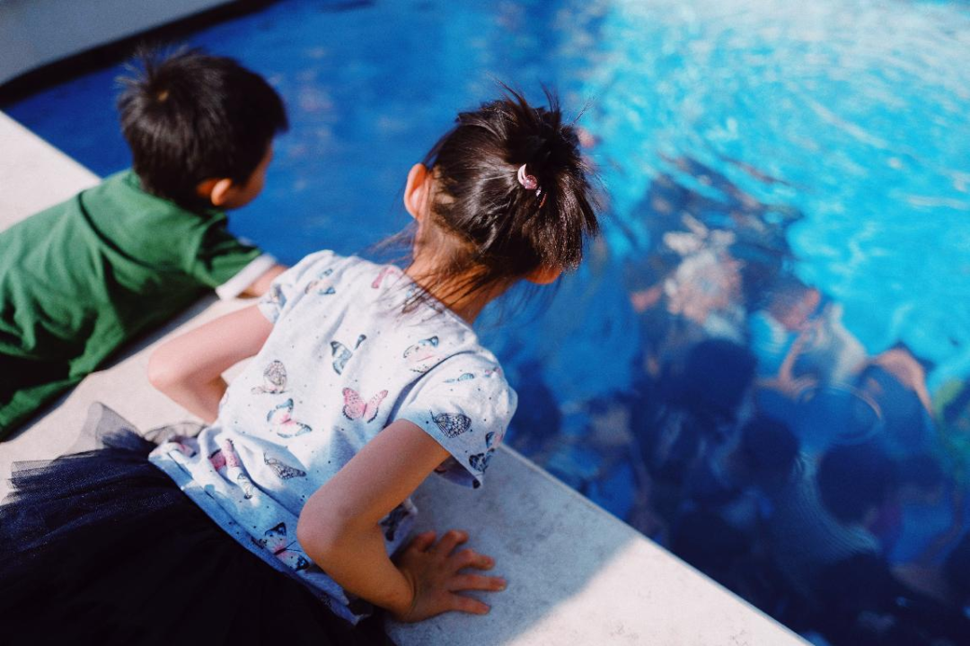 游泳池里没有人在游泳,却有穿戴整齐的人在水底嬉笑漫步,