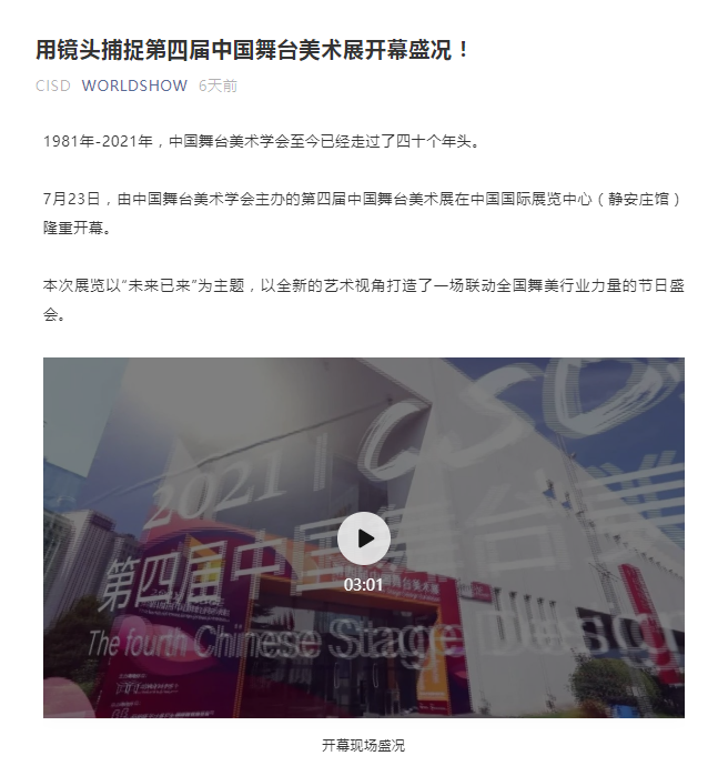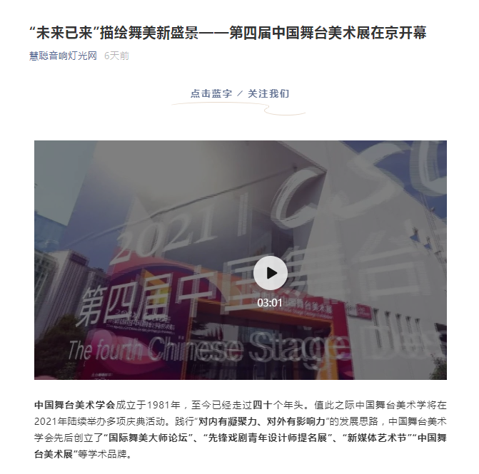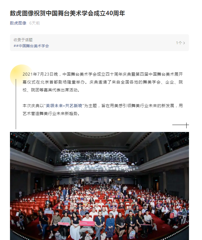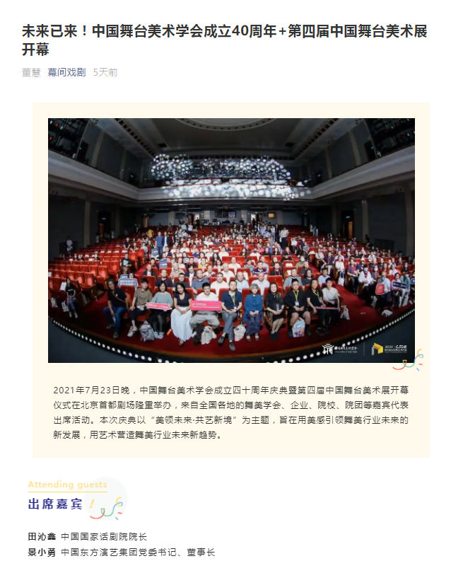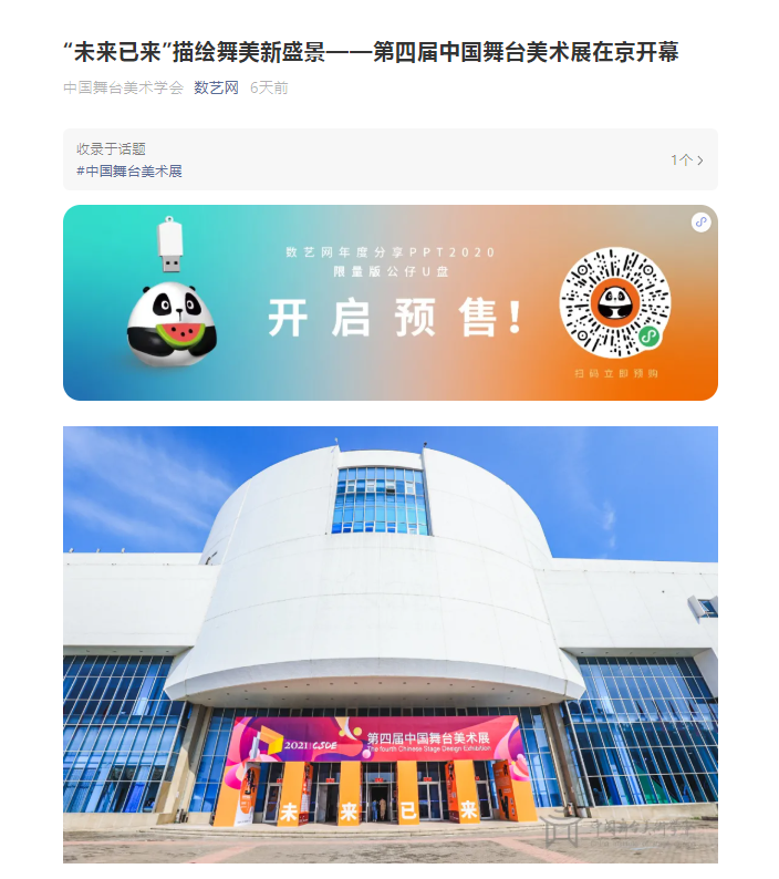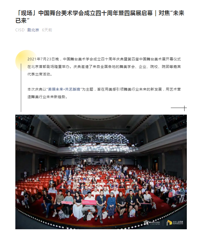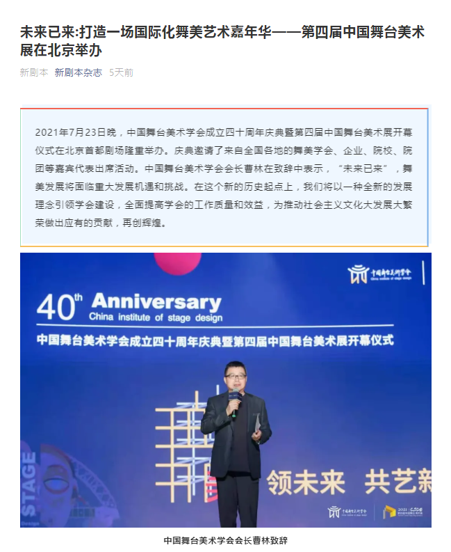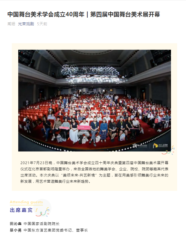 - 本文内容由数艺网收录采集自微信公众号中国舞台美术学会 ,并经数艺网进行了排版优化。转载此文章请在文章开头和结尾标注“作者”、“来源:数艺网” 并附上本页链接: 如您不希望被数艺网所收录,感觉到侵犯到了您的权益,请及时告知数艺网,我们表示诚挚的歉意,并及时处理或删除。
