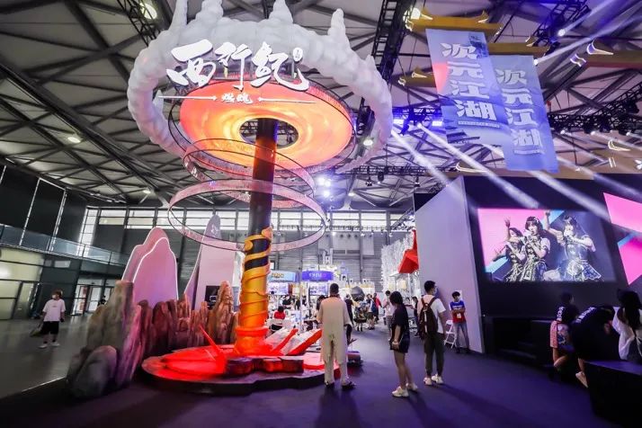 从远处望去快手游戏的展区,直插云霄的巨型金箍棒、整装待发的旅人小队、庄严怀旧的大城门……虽风格各有千秋,但都江湖味十足。同时又不乏超大屏幕试玩,VR设备的游戏沉浸式体验等“黑科技”加持,整体可以说是将“国风+二次元”的主题贯彻到底。