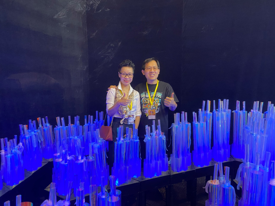 这件作品强调艺术与技术相结合的重要性,光影艺术表现力和现场感染力极强,是灯光艺术展区最吸睛的展品之一,不仅吸引了众多观展群众积极参与,还获得行业大咖的广泛关注、讨论及驻足。
