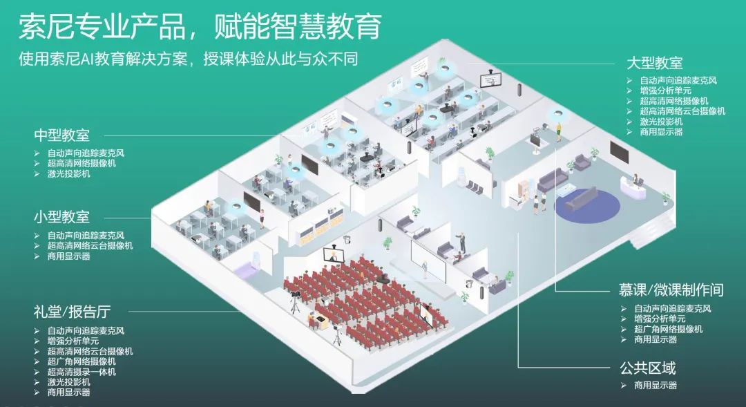 索尼提供了一系列线上+线下融合授课和在线教学的解决方案,创新、易用、高效的技术,辅以AI(人工智能)增强的音视频输出体验,可以帮助学校把每一间教室或讲堂变成一个灵活的、设施完备的远程教学空间。让课程更吸引人、为教师提供支持、帮助学生取得更好成绩。