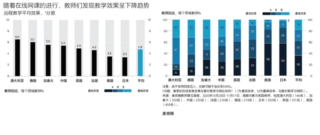 * 来源:麦肯锡教师意见调查:学习效能的损失是全球性的,且影响非常明显(2021年)。