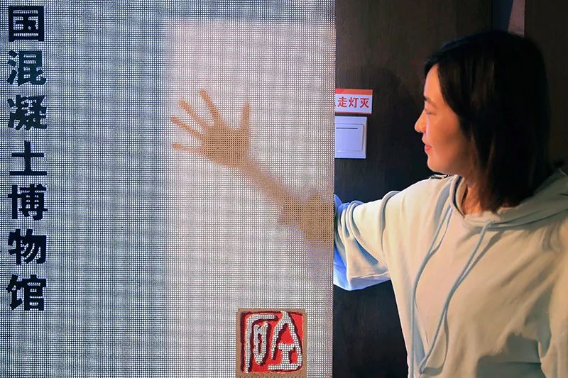 参观者在贵州省毕节市中国磐石混凝土博物馆里体验透光混凝土。 新华社发 韩贤普 摄