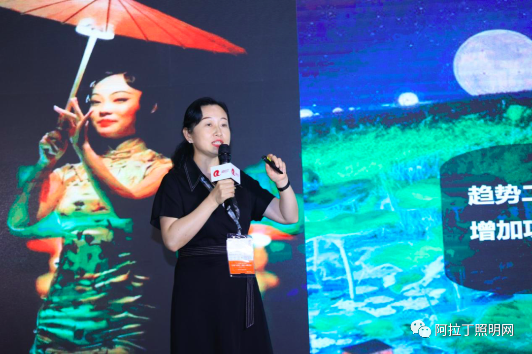 最后一位压轴演讲嘉宾是知学景点学院院长/杭州彬林文化旅游发展有限公司创始人蒋蓉女士,她向大家分享了《网红文旅夜游的发展趋势》主题演讲。蒋蓉以亲身实例阐述了灯光与演艺结合并服务于商业,从而实现经济效益这一过程。她认为“夜游”是夜间经济的核心产品,是沉浸在夜间的自然与艺术的环境里,能够与游客互动,创造出更多消费需求的项目。